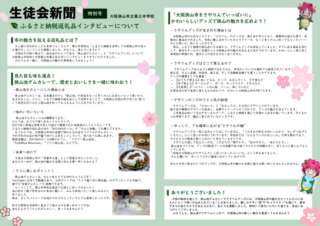 【大阪狭山市HP】第三中学校生徒がふるさと納税を通して市の魅力を発信!