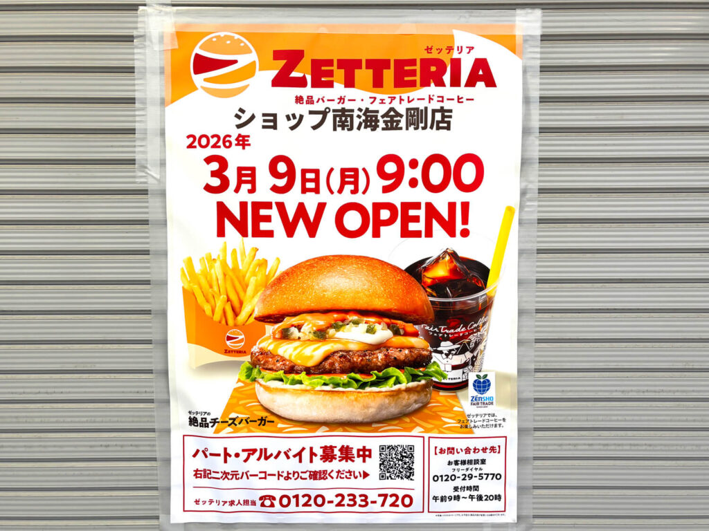 【大阪狭山びこ】【さよならロッテリア】金剛駅前のロッテリアが「ゼッテリア」に!2026年3月9日リニューアルオープン