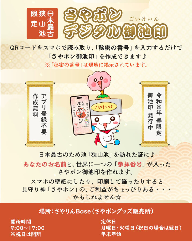 【大阪狭山びこ】日本最古のため池「狭山池」を訪れた証に♪「さやポンデジタル御池印(ごいけいん)」の発行がスタート!
