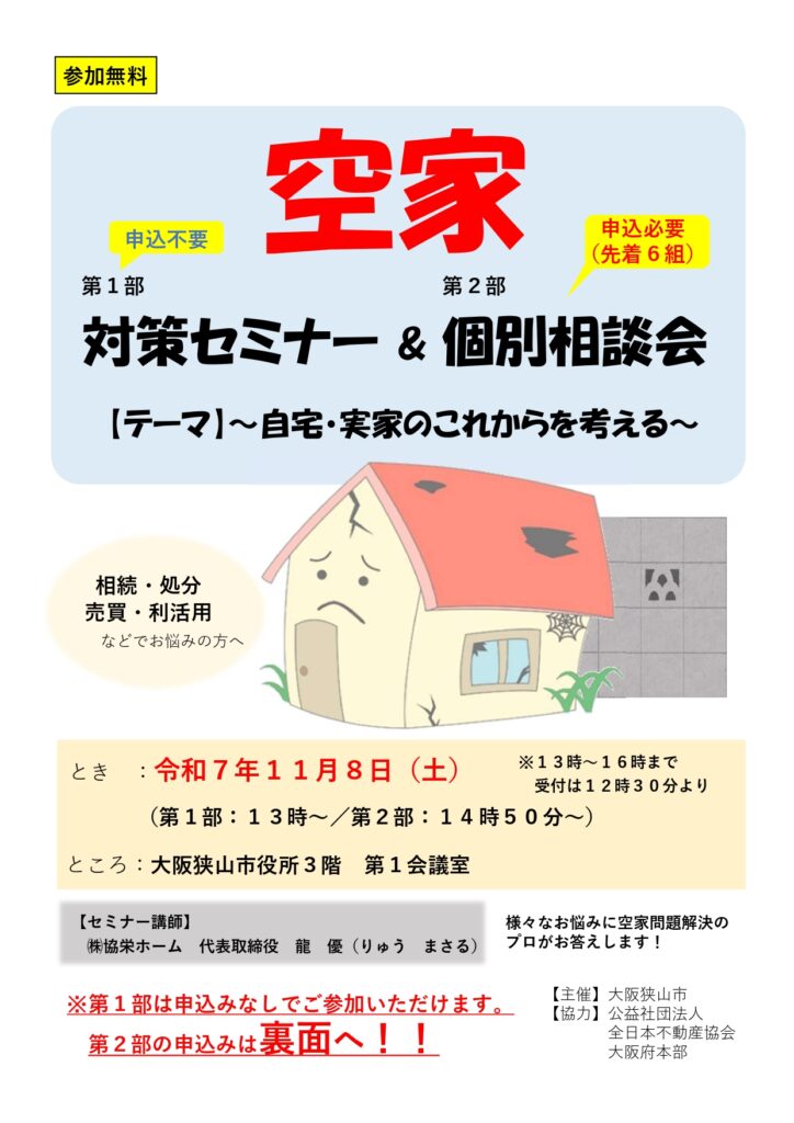 【大阪狭山市HP】公民連携による空家対策セミナー&個別相談会~自宅・実家のこれからを考える~