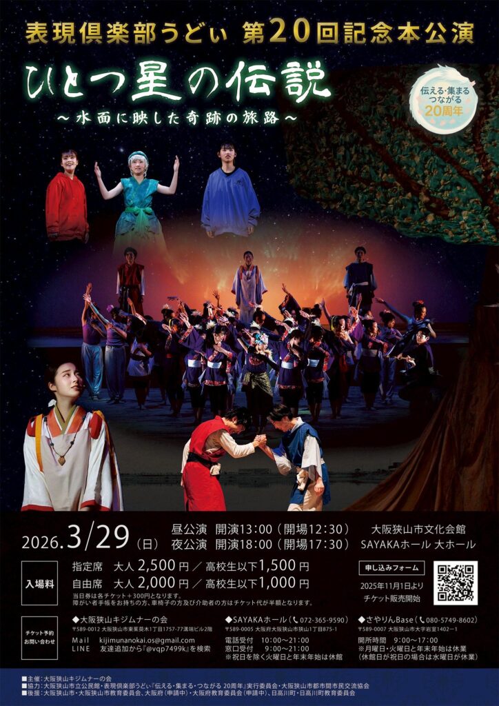 【大阪狭山びこ】【感動の20周年】現役生・卒業生が集結!「表現倶楽部うどぃ 第20回記念本公演」が、SAYAKAホールで2026年3月29日開催 | 大阪狭山びこー大阪狭山市の地域情報サイト