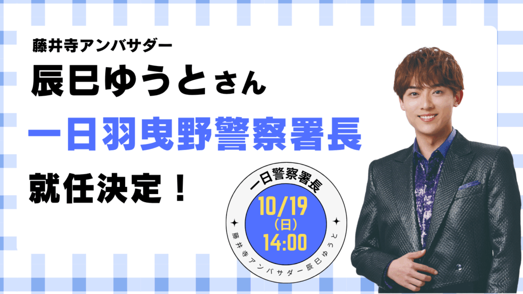 【羽曳野ニュース】藤井寺アンバサダー「辰巳ゆうとさん一日羽曳野警察署長に就任決定!」 – city.fujiidera.lg.jp