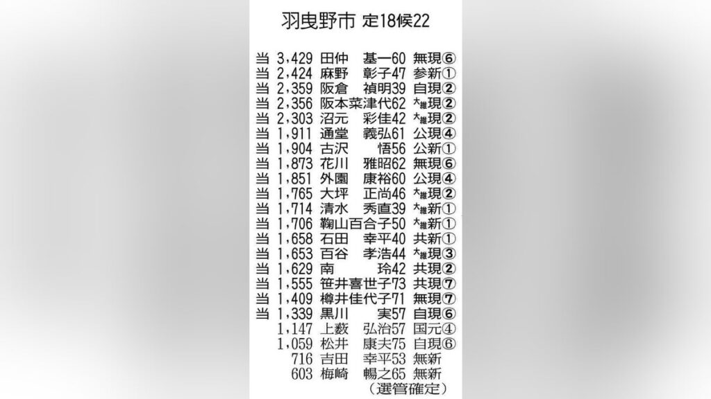 【羽曳野ニュース】大阪・羽曳野市議選挙…新議員は大阪維新の会6、公明3、共産3、自民2、参政1、無所属3:地域ニュース – 読売新聞オンライン