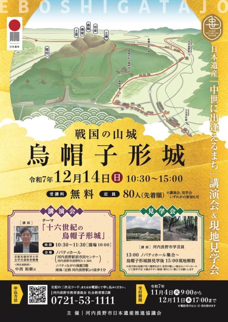 【河内長野市HP】日本遺産「中世に出逢えるまち」講演会&現地見学会 『 戦国の山城 烏帽子形城』